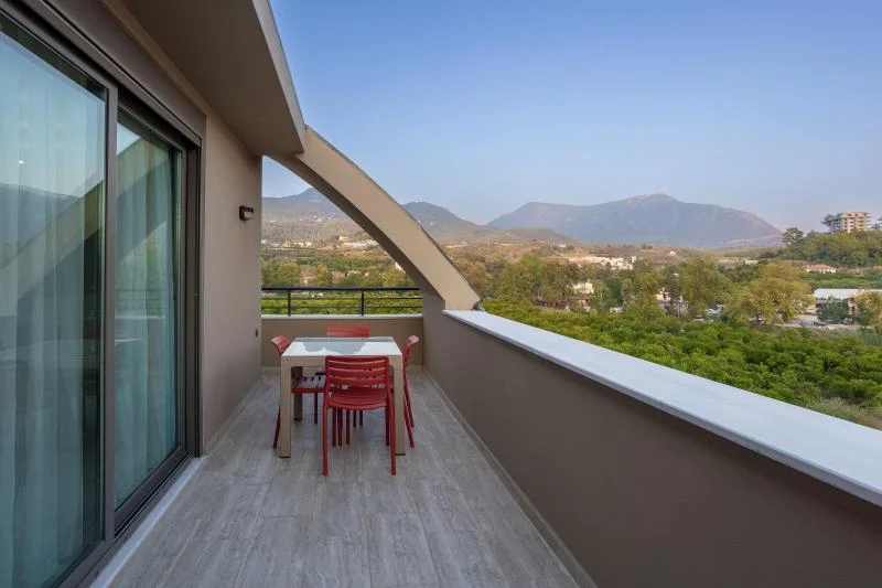 Loovox Suites’in 120 m² genişliğindeki Deluxe Suite odaları, doğayla iç içe huzurlu bir konaklama deneyimi sunar. Geniş oturma odası, iki ayrı banyosu, balkon veya terasında şezlong ya da sandalye ile tam donanımlı mutfağı sayesinde ev konforunu aratmaz. Modern tasarımı ve fonksiyonelliğiyle, özellikle uzun konaklamalar için idealdir.