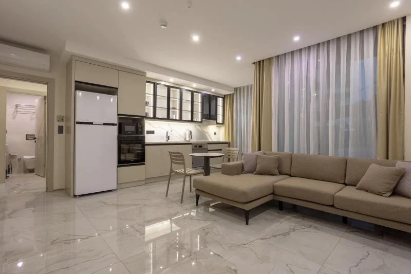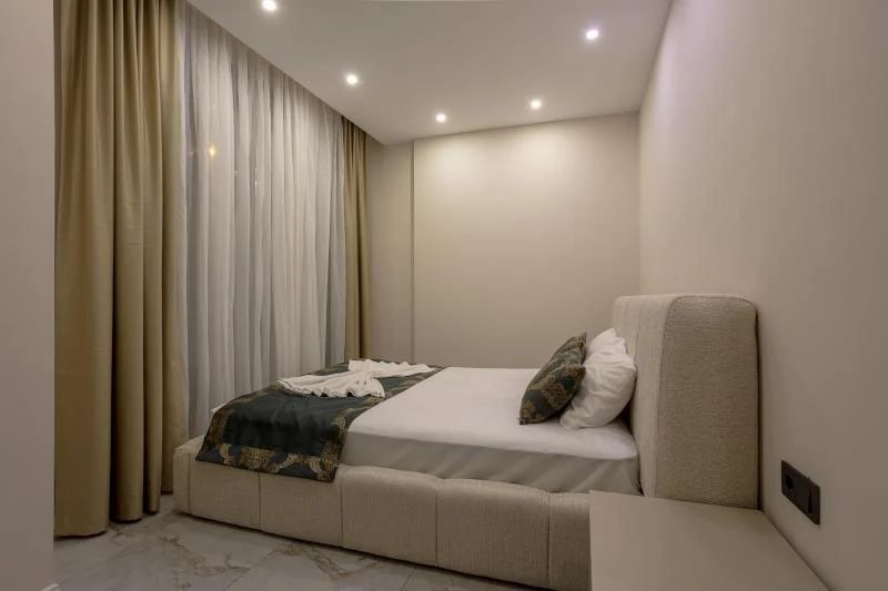 Modern dekorasyon ve tam donanımlı mutfağıyla adeta evinizdeymişsiniz gibi hissedeceğiniz bu süit, mahremiyet arayan çiftler ve aileler için idealdir. İki ayrı banyosu ve geniş iç mekânlarıyla rahatlık ve işlevselliği bir arada sunar.