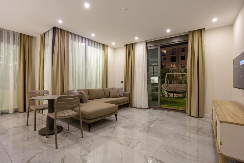 Loovox Suites’in en ayrıcalıklı seçeneklerinden biri olan Premium Suite, 215 m² havuz ve bahçe dahil genişliği, ferah oturma alanı ve size özel havuzu ile konforun ötesine geçiyor. Bahçeye açılan balkon veya terasta huzur bulacak, özel havuzunuzda günün keyfini dilediğiniz gibi çıkaracaksınız.